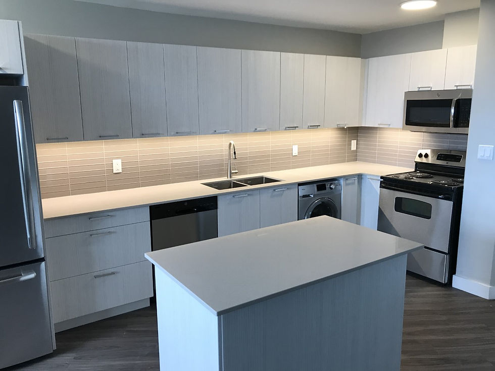 This beautiful kitchen was designed and manufactured by Ridgeway Kitchens & Design. This install was done for one of Ridgeway's apartment projects, and show cases the beauty and ingenuity of this kitchen design.