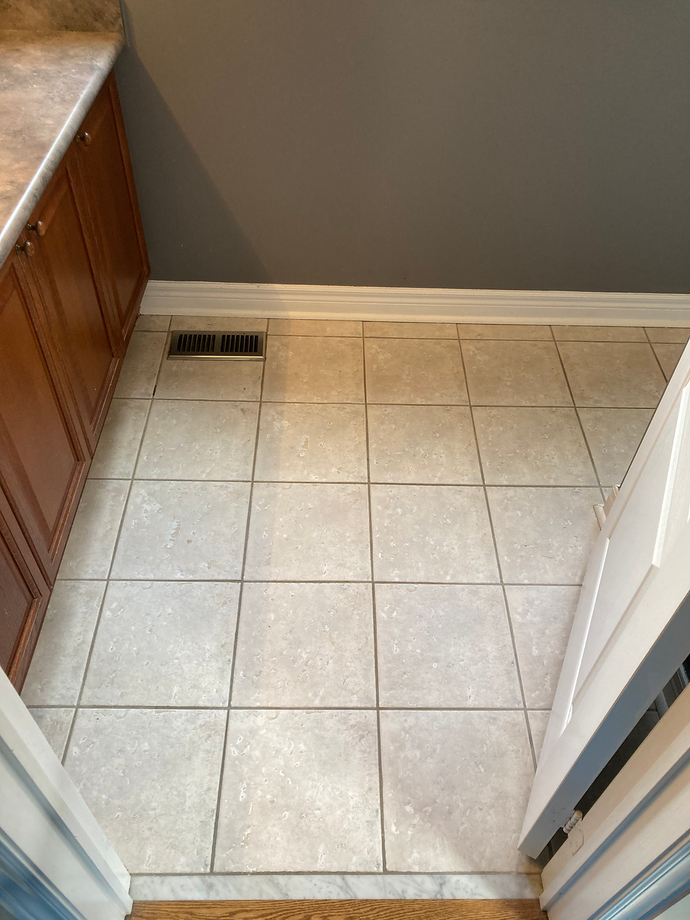 The flooring installed was a luxury vinyl flooring, a great material for any bathroom or wet space. This particular flooring selected was a great option for this bathroom combining both the classic look of a herringbone pattern with the modern colour scheme that picked up on the colour pallet of the painted bathroom walls.