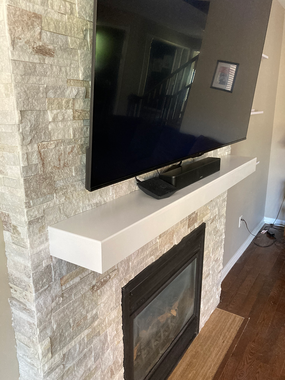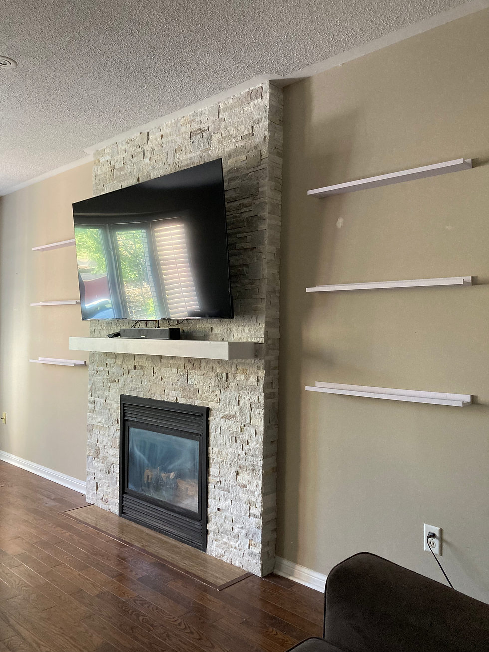 A new floating style mantel was custom made on-site to provide support for the new TV speaker, and to provide a more modern aesthetic.