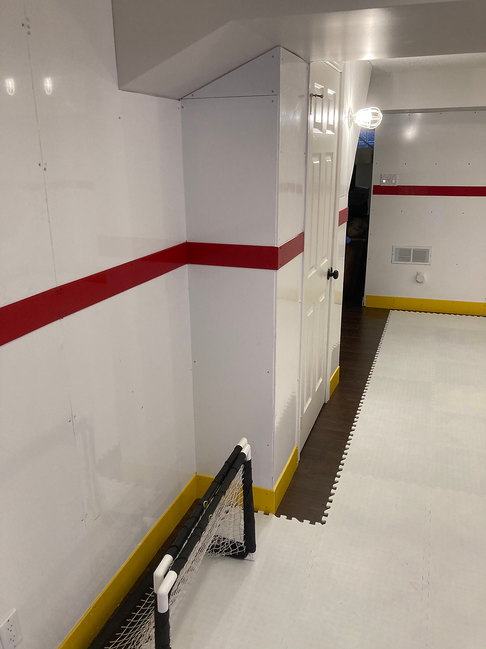 This definitly is not one of those projects you see everyday, and it really brought the inner kid out in myself to see the finished product. Hours of target practice and mini stick games with friends would have been spent down here, and the lucky young hockey players in this home are sure to be making those same memories on their way to the big leagues.
