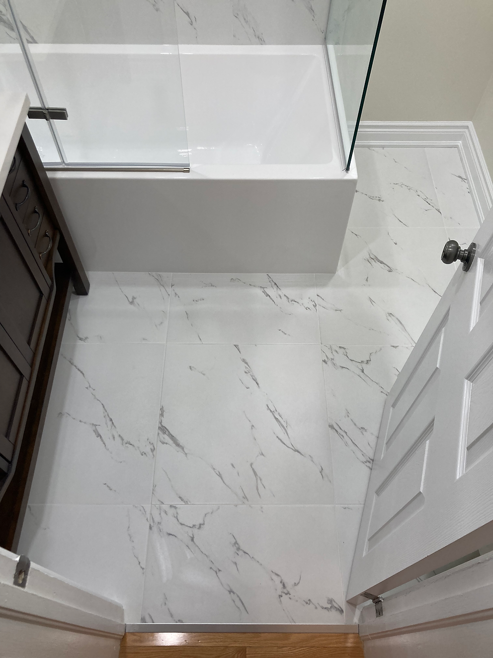 -Bi folding main entry door to reduce the swing path of the door when getting in and out of the shower. This style of door also makes it a breeze to move the door out of the way when needing to use the tub to bathe children.